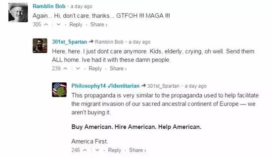 其中在特朗普支持者最多的美国右翼网站Breitbart新闻网上,那里的评论画风就是“能不能别拿孩子当违法的挡箭牌”、“支持特朗普让这些非法移民哪儿来的滚回哪儿去”以及“让美国重新变得强大起来”等等……