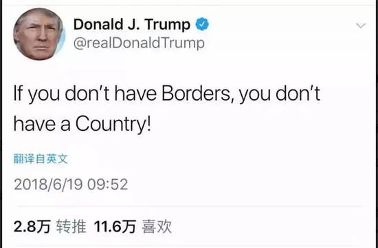 特朗普本人更是在他的个人社交账号上说出了这么一句话:“一个国家如果没有了自己边境,这就不能称之为国家!”